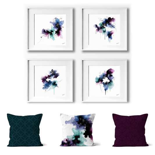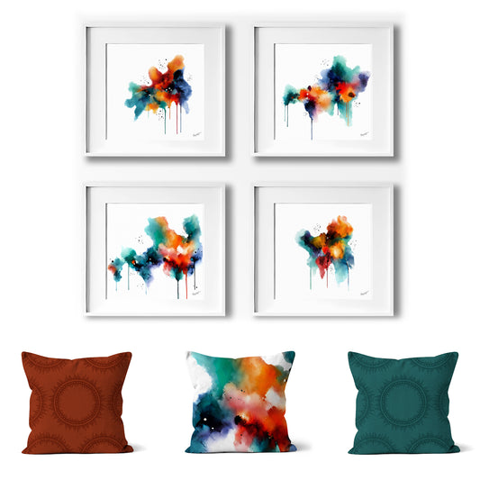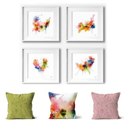 Each cushion features a soft-touch fabric and design elements that tie directly to the artwork’s palette, whether it’s the gentle spring hues or the bolder shades of summer. They’re a simple way to add elegance, comfort and style to your home, and you can easily switch them out as the seasons change—just like the prints. Pair one or more with a seasonal set of prints you love to complete the look and bring a touch of artistic flair to your sofa, chair, or bedroom.