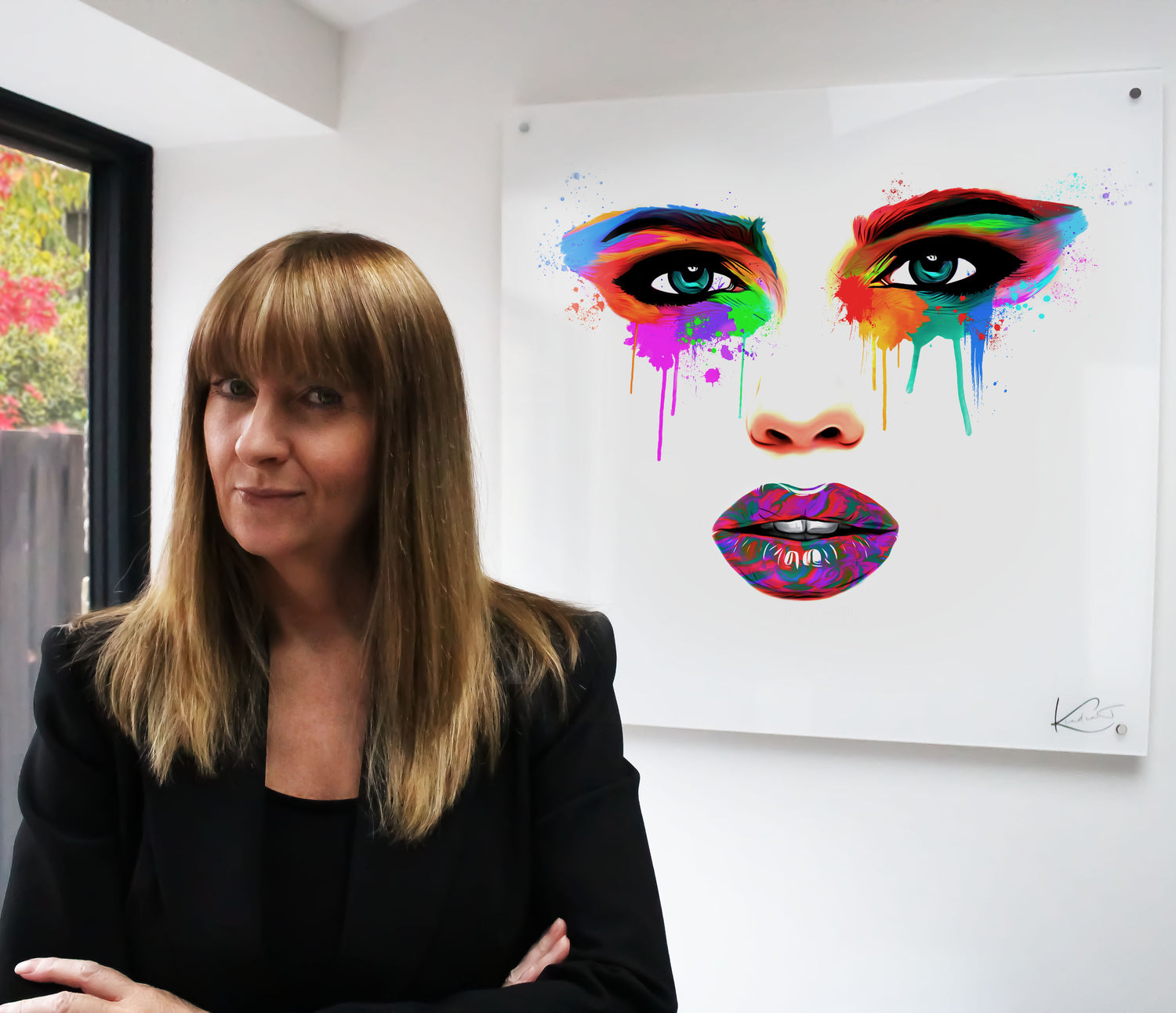 Kendra is a self-taught artist whose work blends contemporary art, writing, and interior design. She came to painting later in life, after a long career in the construction industry—a world she still works in today. As she approached midlife, she felt a pull to rethink how she saw herself and her place in the world. That shift opened the door to digital and mixed-media painting, where she found the freedom to express ideas, moods, and stories that had been gathering quietly in the background.